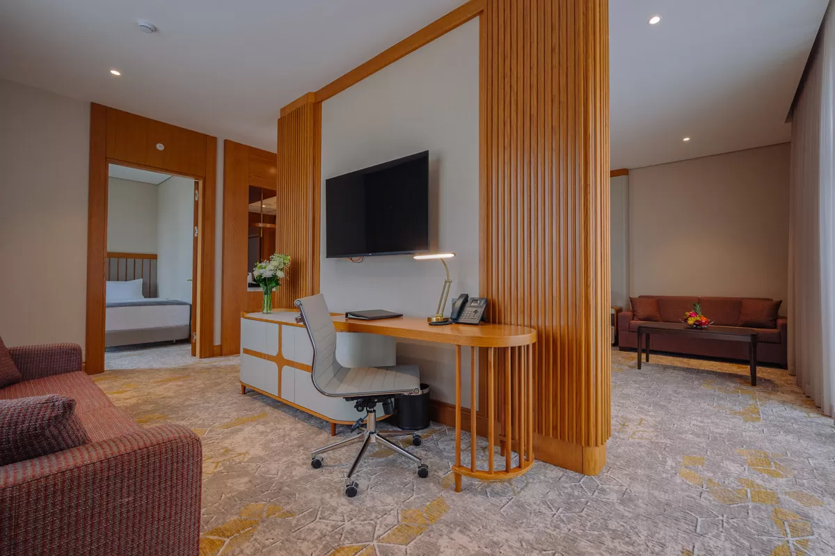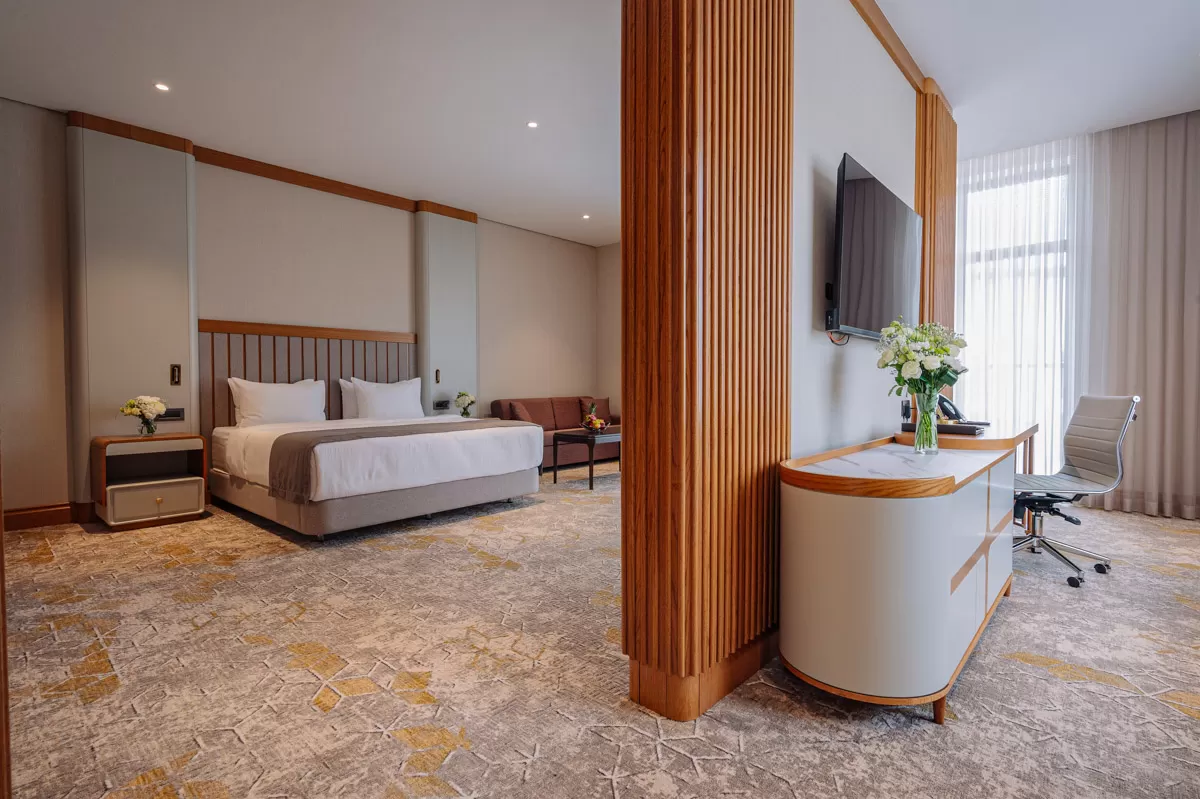 В санатории Кисловодска «Источник» подготовлены двухместные двухкомнатные апартаменты категории «Сюит Модерн». В просторных и вместительных апартаментах общей площадью 67 кв.м можно разместить до 6 человек, включая детей. Для этого предусмотрены дополнительные спальные места.