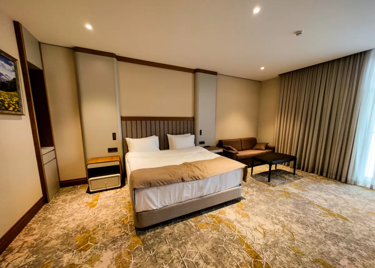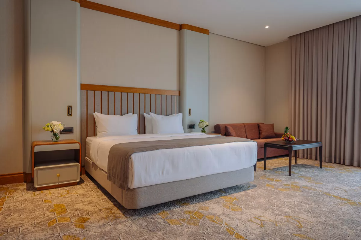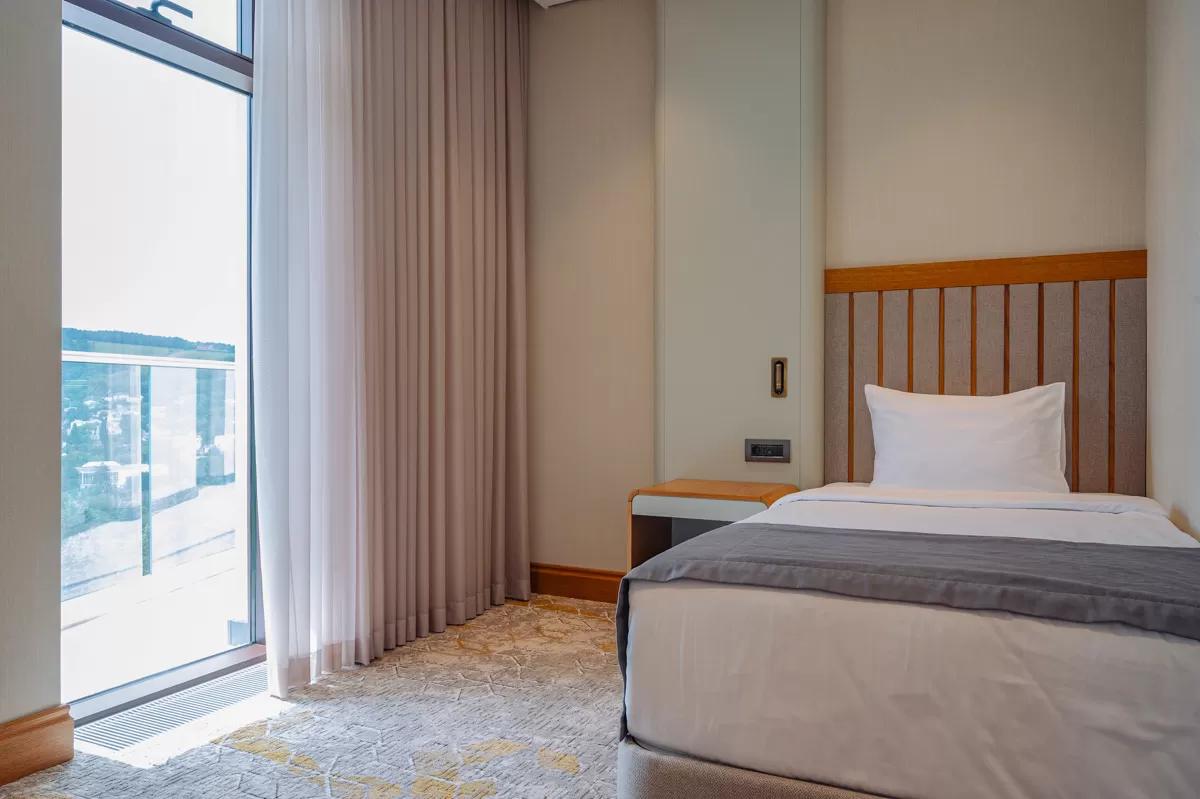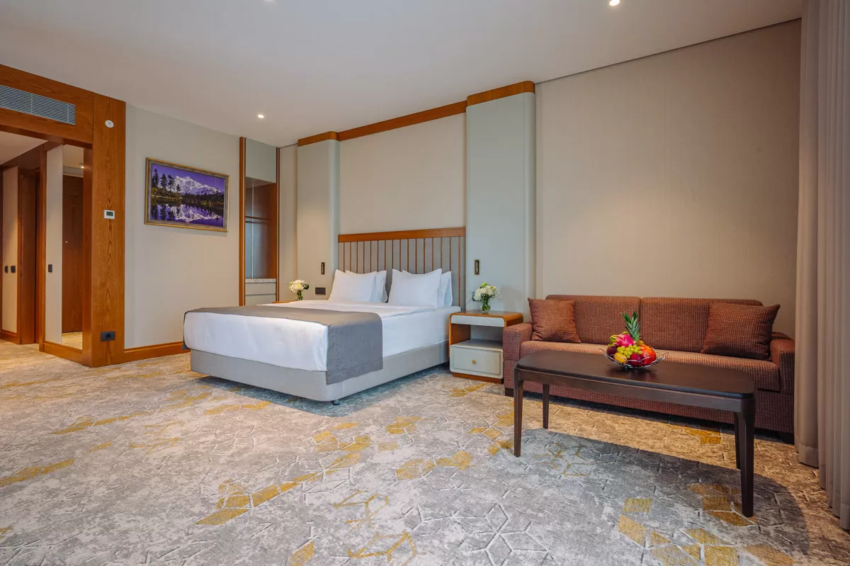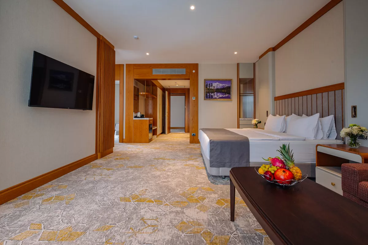 В апартаментах есть климат-контроль. Предусмотрены сейф для хранения ценных вещей, мини-бар с посудой и телефон для связи с персоналом. Уборка комнат проводится ежедневно. Окна номера выходят на Курортный парк.